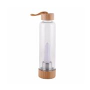 - This water bottle is made from glass and bamboo.